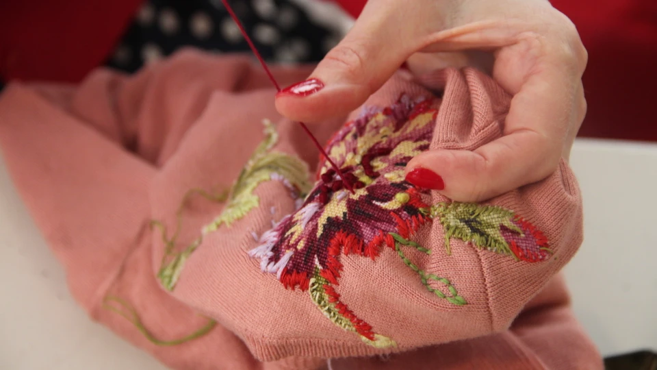 Jane præsenterer grundlæggende sting inden for frit broderi: