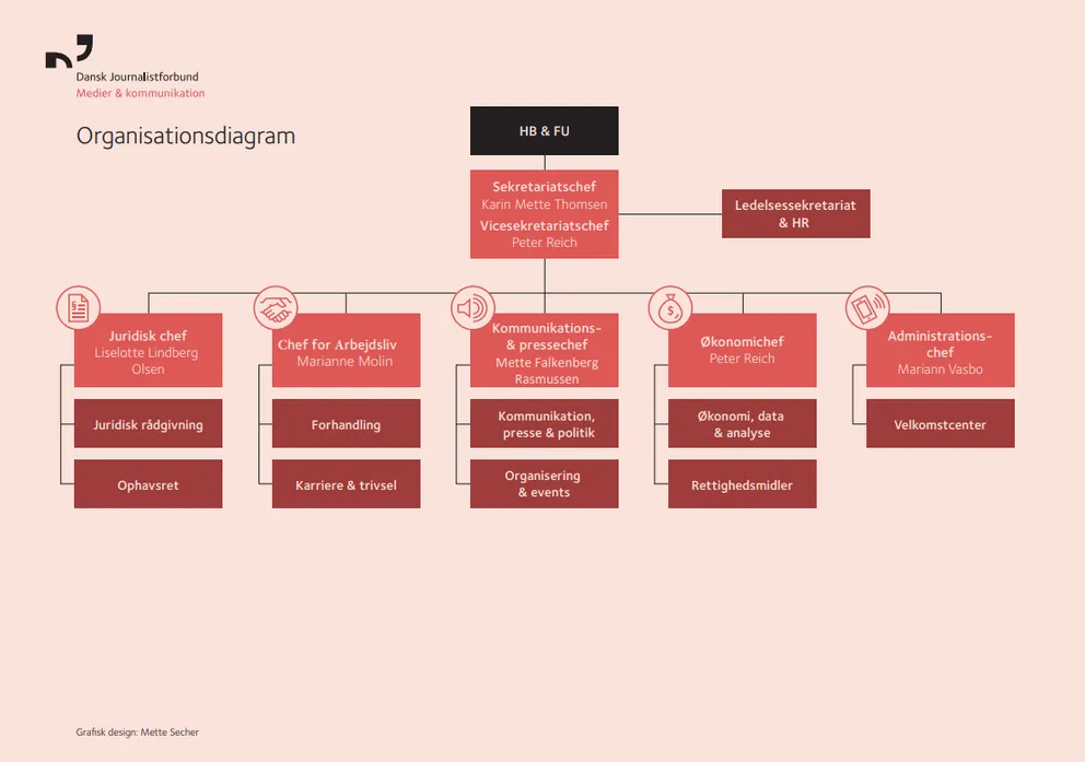 I den daglige drift står godt 70 medarbejdere for administrationen, og dertil kommer vores A-kasse for Journalistik, Kommunikation & Sprog (AJKS).